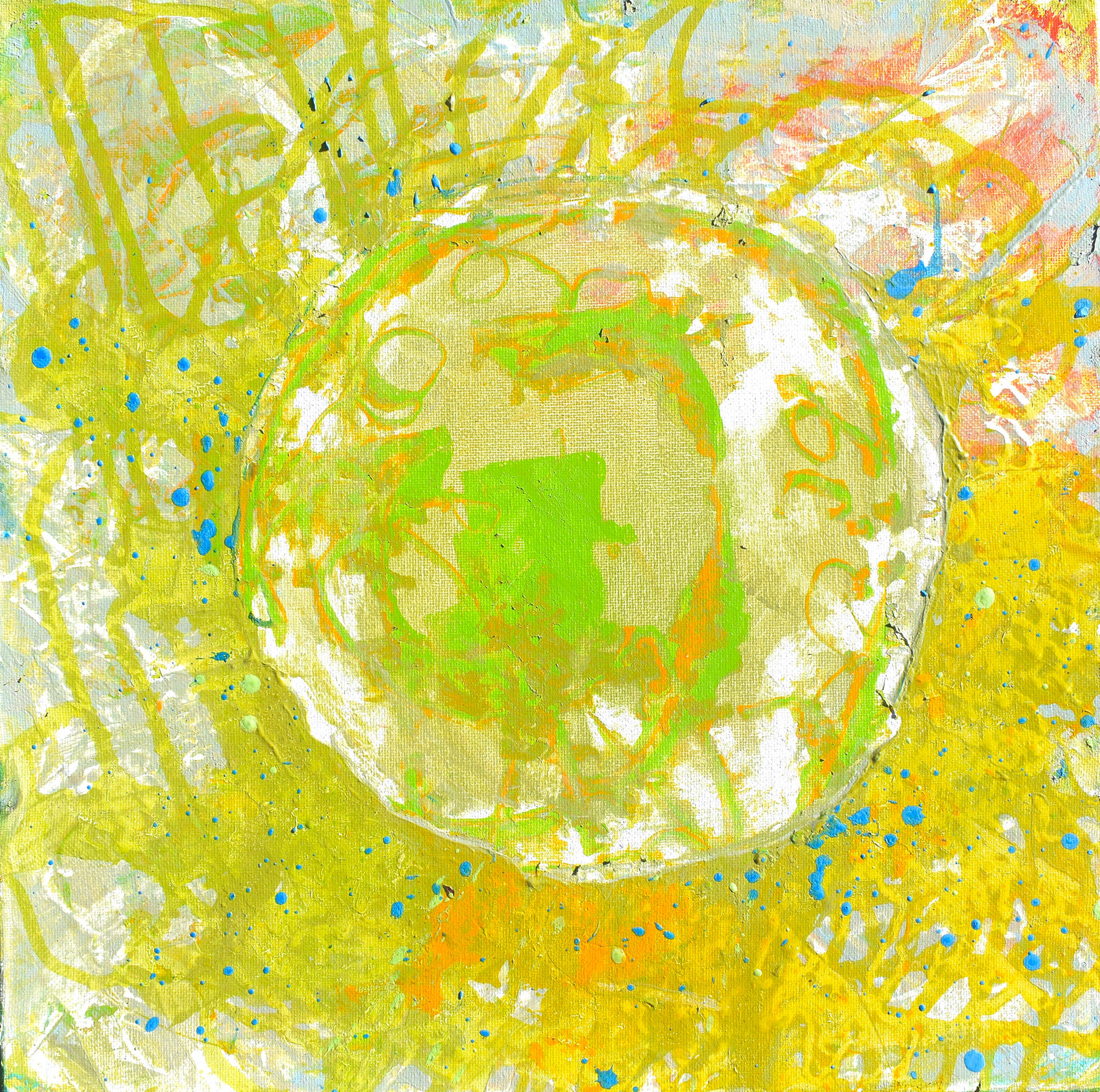 . 2019, acrylic, ink, and chalk on canvas. 12 x 12.