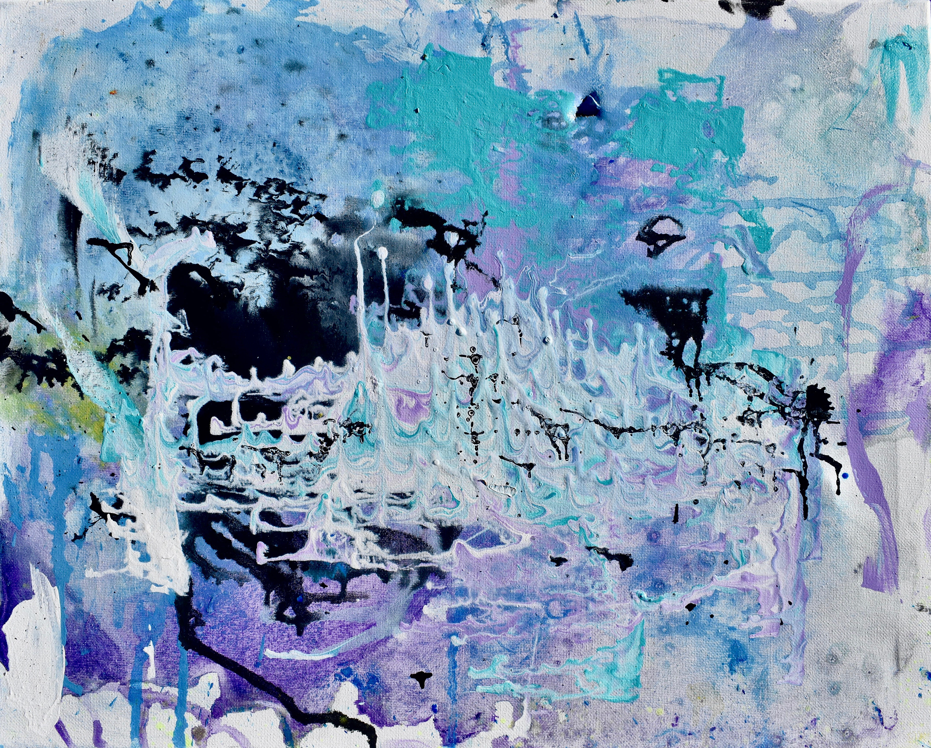 . 2019, acrylic, ink, soap, and chalk on canvas. 18 x 24.